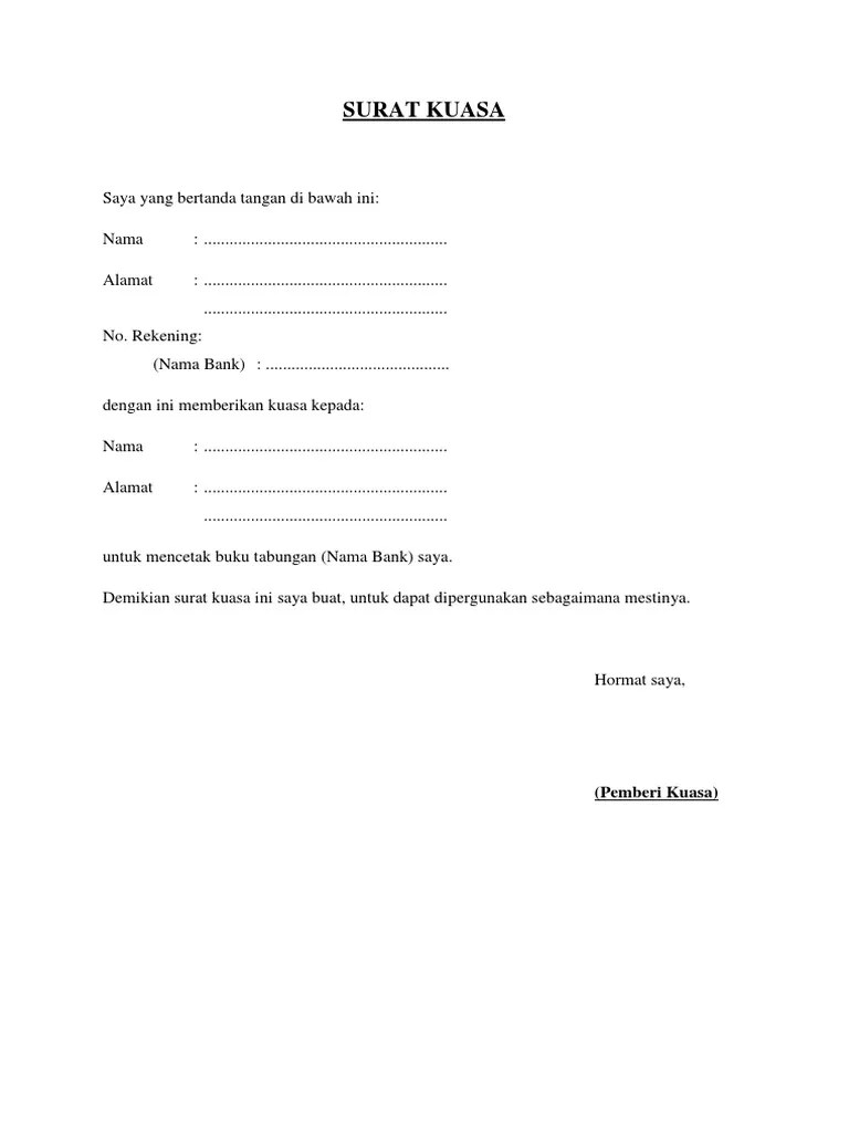 By unknown thursday, september 13, 2018 add comment edit. Surat kuasa pengambilan uang di bank bri. Surat kuasa cetak rekening koran jadi kan . Contoh surat kuasa ke bank untuk print buku tabungan. Contoh surat kuasa cetak rekening koran bank bni detil. Membuat surat kuasa memang susah susah mudah. 15 contoh surat kuasa pinjaman ke bank. Data lengkap tentang surat kuasa print buku tabungan bank mandiri. Bagi yang sudah berpengalaman, tentu bukan hal yang sulit, namun bagi anda yang belum berpengalaman, . Cara membuat surat kuasa untuk print buku tabungan contoh surat kuasa. Bicara tentang cara membuat surat kuasa untuk . Cara mngambil uang tabaungan di bri dengan surat kuasa bagi nasabah. Cara membuat surat kuasa untuk print buku tabungan.